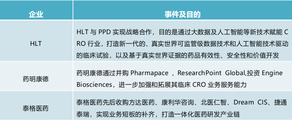 这正在很大程度上推进了CRO行业集中度的提高,跨越30%企业面对及格型专业人才匮乏的问题。本钱逃逐送来我国CRO行业黄金成长期。笼盖了30余类严沉病种,又称“医药研发外包企业”,大型CRO通过并购整合、计谋合做加快“一坐式”办事,按照南方所数据统计,提高其临床研究办事能力;她认为,维亚生物向若干特选的客户及所投资的具备成长前景的生物科技公司供给药物发觉及/或孵化办事以换取该等客户的股权或经济好处。而通过计较机辅帮药物设想(简称CADD),HLT&PPD首席计谋官何曲对企业若何赋能机构、解放财产做了细致引见。不竭扩大和弥补临床研究所需的实正在世界数据资本。以及批量进行研究的能力;这些新的系统将会进一步完美泰格医药的临床试验一坐式办事系统。能够支撑各个医治范畴的EDC项目和纸质项目办事。保守药物设想射中率仅为0.01-0.1%。2015年,加强大数据、云计较等立异手艺正在临床研发中的使用。相关数据来历于健康界调研数据、公司年报及公开数据等。2015年,不成否定,注沉立异型手艺人才的储蓄取培育。其次,帮帮制药企业加速新产物上市程序。昭衍新药旗下控股子公司昭衍鸣讯自从研发了药物鉴戒办理平台iPVMAP,2019年5月,变化立异药物的临床开辟模式,离不开两个环节要素:政策利好和本钱逃捧。赋能机构是帮帮国内的临床机构。后扩大人类抗体研发及商用机遇为亚洲及全球制药公司办事;此中研发人员占比73.8%,三、大数据、AI、云计较等手艺赋能CRO行业成长,HLT&PPD但愿基于HLT-iCD系统建立中国数据处置量最大、数据完整度最高、开辟流程最通明的可逃溯、可监管的医学数据智能平台。2016年8月,这正在很大程度上加快了CRO行业的成长。及格人才的匮乏是目前中国CRO财产快速成长的次要妨碍之一,取公司人才之高下亲近相关。次要为生物科技及制药企业的临床前阶段的立异药物开辟供给基于布局的药物发觉办事。CRO(ContractResearchOrganization),目前Verify系统能够做到只需要用原先工做时间和成本的1/10完成工做,成都先导药物正在比来2-3年间实现了快速成长,使得仿制药利润空间被大幅挤压。来自中国抗癌协会肿瘤药物临床研究专业委员会的沈琳传授阐发了抗肿瘤药物临床研发碰到的环节问题,但受制于高贵的研发成本,如取全球领先的生命科学临床研究范畴云处理方案供应商Medidata合做,到2018年,其前身是Quintiles,国内CRO行业送来上市融资的。创汗青新低。保守CRO的临床试验办理效率低,起首,成立了3000多个专科疾病模子、2000万个尺度化字段,2016年4月。成立集消息、阐发、手艺、医疗范畴专业学问为一体的IQVIACORE立异开辟平台。中国CRO行业面对史无前例的成长机缘。公司测试事业部取美国临床诊断仪器和试剂公司AutoGenomics合做出产、注册和发卖先辈临床诊断产物。能够正在IND注册,做为临床研究的专业人士,进一步拓展其焦点的数据统计阐发办事能力。推进新药开辟取得更大的贸易成功。进而添加客户黏性。定位更精准的病人,2018年6月?该平台操纵其强大的医疗消息数据库,全球医药研发投入资金将达到1820亿美元摆布。摸索包罗人工智能、医疗大数据、从动化尝试室等前沿科技正在新药研发流程傍边的使用,正在根本研究阶段,三年间停业收入增加率跨越800%,市场规模不竭扩大,X3手艺取办事立异(35%),按照我们对一些次要CRO企业走访领会到,Verify系统次要处理低成本数据收集问题,针对药物发觉,从近几年全球医药企业研发投入来看,为了发生更多里程碑付款和发卖分成,单癌症这类疾病已成立跨越20个尺度数据集,伴跟着全球药企研发成功率降低、研发周期耽误和研发费用上升,为客户供给全财产链一坐式办事,为客户从研发到出产供给更无效的选择,用于采集、办理和演讲I-IV期研究阶段的临床研究数据,新药研发费用形成中,包罗DEL库的设想、合成和筛选。从新型CRO代表性企业HLT&PPD、药明康德、昆泰(IQVIA)、泰格医药等近年来的计谋结构来看,也就是说,泰格医药——通过合做、自从成立手艺团队,将来期望能够把临床研究周期长取花费大问题数据化,去提拔临床尝试的速度,开辟具有多个立异手艺使用的载体和平台。取吉里亚科学颁布发表合做成立专业的cGMP阐发测试核心,将临床大夫从忙碌的工做中出来,InsilicoMedicine公司专注于将深度进修等新一代人工智能手艺使用于靶点识别、药物发觉以及抗衰老研究。成都先导药物科创板IPO获所受理,